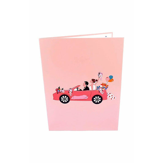 Wyprzedane3D Kartka - Nowożeńcy w samochodzie